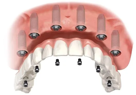 👉 An All-On-4™/All-on-6™ dental procedure aims to replace an entire dental arch. It involves the placement of dental implants in the jawbone, which are then used to support a dental prosthesis, typically dentures.