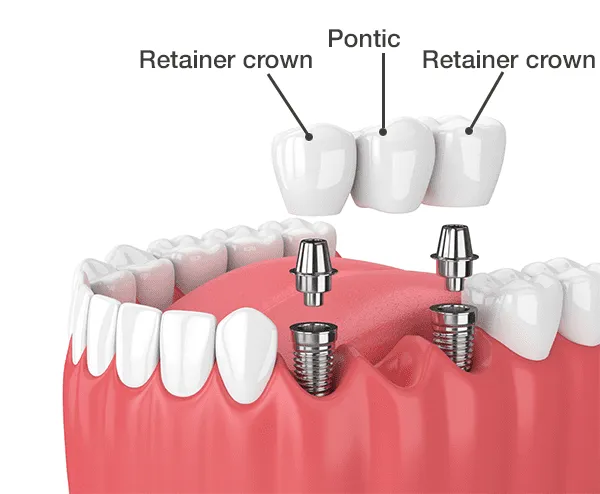 👉 Implant-Retained Bridges - A solution used when several teeth are missing in a row, or when you don’t have enough healthy teeth to support a traditional dental bridge.